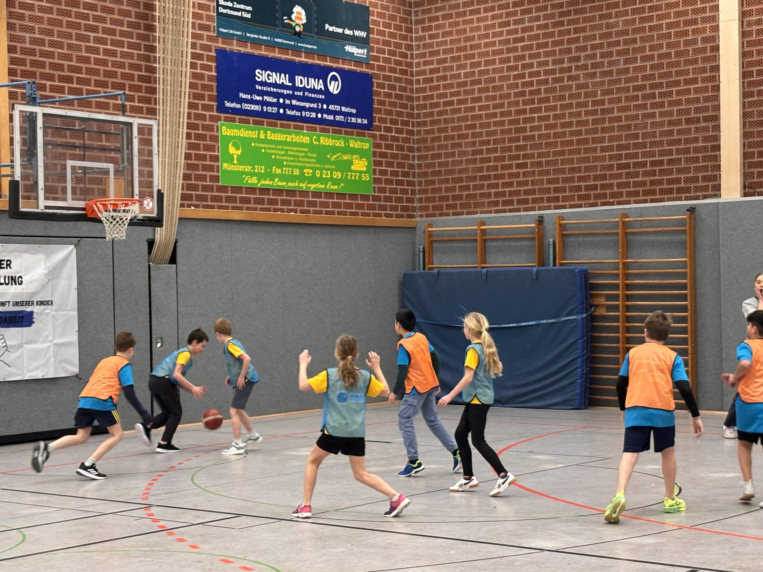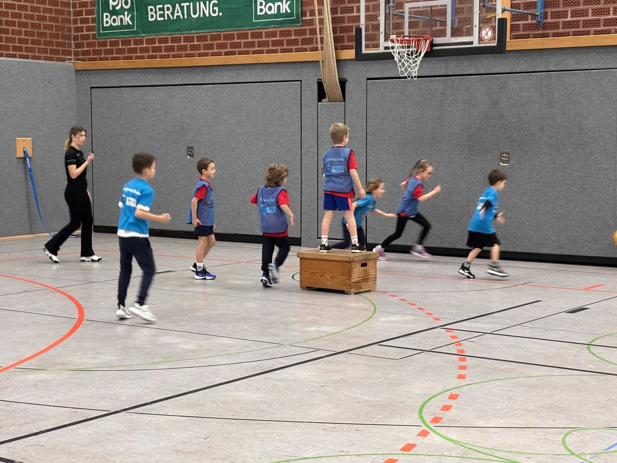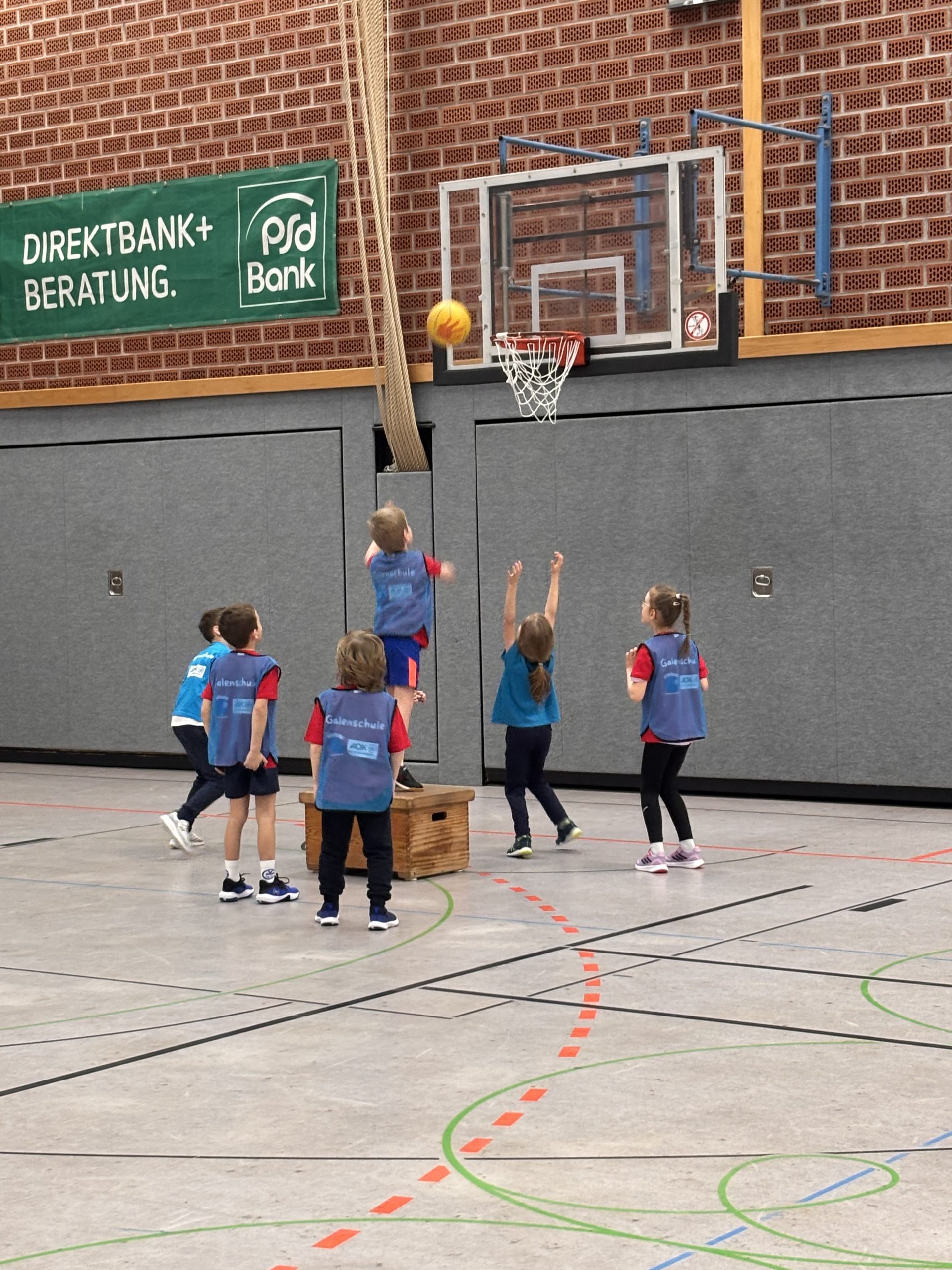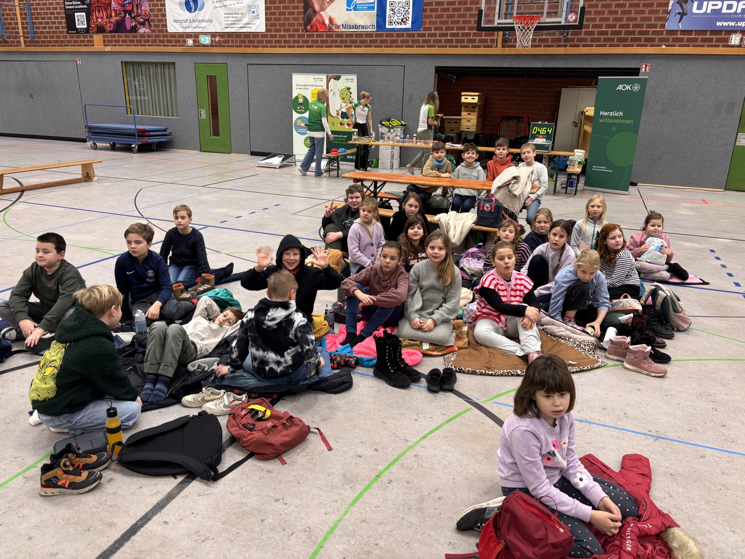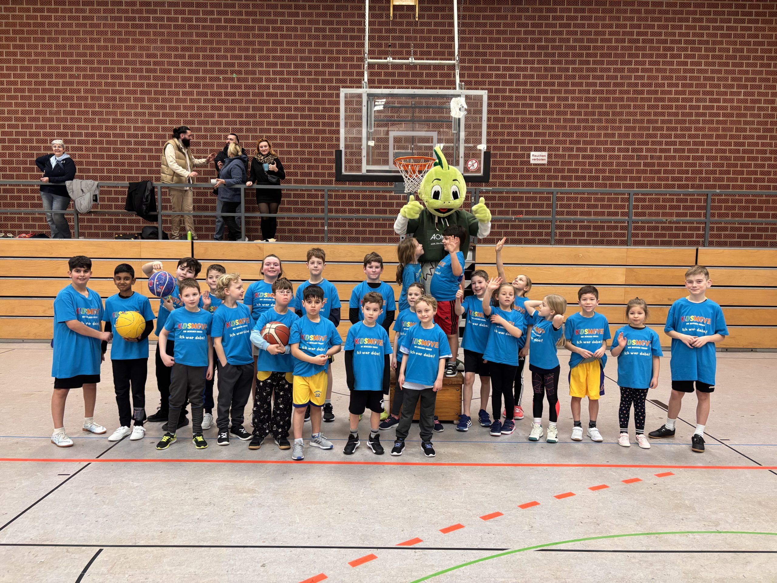 Gespannt warteten die ersten Zuschauerkinder der Lindgren Schule auf den Startschuss. Nach einleitenden Worten von Christoph Beermann und Anna Billmann, versuchte Bürgermeister Marcel Mittelbach ein paar Körbe zu werfen. Sowohl er als auch die Maskottchen des GV und der AOK mussten allerdings feststellen, dass die Kinder einfach besser sind. Unter den ersten beiden Jahrgängen belegten die Teams der Lindgren Schule Platz 1, 2 und 5. In den Jahrgängen 3 und 4 schaffte es unsere Schulmannschaft auf Platz 2. Wir sind stolz auf euch und danken allen Beteiligten für einen Vormittag voller Spaß und Sport!